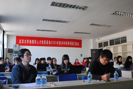 2011年10月16日,我院组织了“金瓶梅在线 地理学人才培养基地”2011年度本科生科研项目评审会。根据科研项目的学科性质,评审分为自然和人文两组,分别在新地学楼3459和3358报告厅举行。经过认真的答辩和讨论,最终有10个课题组共15名学生获得2011年度本科科研项目评审的一、二、三等奖。