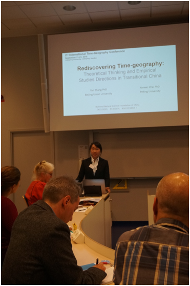 时间地理学研究团队与来自北京联合大学、华东师范大学、中国科学院深圳先进技术研究院、大连理工大学、西北大学、东南大学等的近十名青年学者参加会议,使中国成为瑞典以外参会人数最多的国家。 美国时间地理学代表人物、伊利诺伊大学香槟分校地理系Mei-Po Kwan教授作了题为“时间地理学与地理情境的不确定性问题”的主题发言,日本时间地理学代表人物、名古屋大学地理系冈本耕平(Kohei Okamoto)教授作了题为“时间地理学在日本:进展与未来”的主题发言。本次会议特别推出的时间地理学新人、中国地理学会青年工作委员会秘书长、北京联合大学的张艳博士与柴彦威教授联名作了题为“重新发现时间地理学:中国转型城市研究的理论思考与实证研究方向”的主题发言。中国科学院深圳先进技术研究院的尹凌博士作了题为“综合实体空间与虚拟空间人类互动的时空GIS:时间地理学方法”的主题发言。 研讨会组织形式新颖,四个大会主题发言与五场专题会场交叉进行,分为“助力于可持续城市生活的城市规划与发展”、“环境发展过程中的人类行为:政策与行动”、“大数据采集、分析与可视化的新技术”、“作为连接过程的移动性、交通与迁移”、“基于个体视角的日常生活中健康与幸福感支持”等专题。北大团队的申悦博士、塔娜博士分别做了口头发表。张雪博士研究生作为题为“郊区中心作为一种活动的地方秩序嵌套—以北京上地-清河地区为例”的口头发表,该研究是新时期时间地理学核心概念在中国城市研究中的最新研究进展。 瑞典隆德大学是时间地理学的发源地,著名的人文地理学家Torsten Hägerstrand教授在1970年代首次用英语在国际上发表与提出时间地理学思想与核心概念体系。该研究的出发点是对个人生活质量的改善,力图通过针对个人行为的线索式研究,总结出不同人群与不同行为系统的匹配,进而更加准确地把握不同类型人群的不同生活需求,为城市规划提供可靠依据。上世纪90年代初,柴彦威教授将时间地理学方法从日本引进中国,此后二十多年间在中国城市中开展了大量的实证研究。时间地理学方法引领了中国时空行为与城市转型研究前沿,过去十年间已培育起以金瓶梅在线