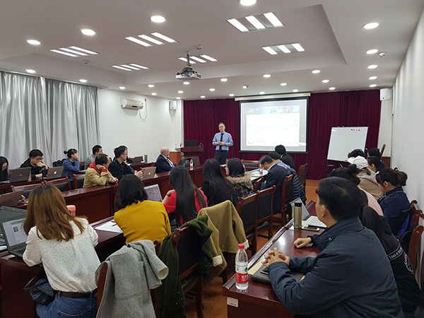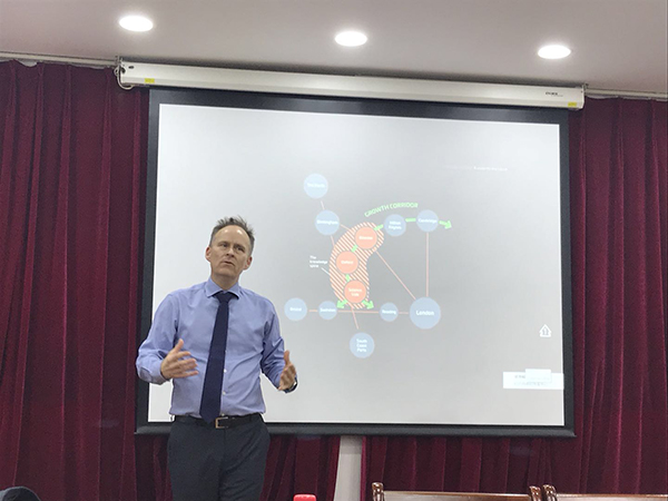 ,Bev Hindle先生作了题为“The Vision for Smart Oxord and Xiong’an Collaboration: The Living Lab and Learning Cities”的学术报告,报告由冯长春教授主持,贺灿飞院长致欢迎词。Hindle先生首先介绍了牛津郡在英国南部牛津-剑桥增长走廊中的重要地位,之后主要围绕牛津郡在智慧城市建设方面的诸多成功实践和未来设想展开,包括政企合作共建、公共交通发展、清洁能源使用、社区创新组织、健康福利保障等内容,并就牛津经验对雄安新区智慧城市建设的示范性作用作出启发式讨论。 图1 Bev Hindle介绍牛津郡智慧城市建设 图2 讲座现场 现场提问环节,Bev Hindle与在场师生就中英两国智慧城市建设方面展开热烈的讨论,如中资企业参与牛津郡城市建设的情况、两国政府对城市建设管治机制的差异、城市规模对智慧城市建设的影响等问题,使在场师生对两国城市建设方面的差异及合作基础有了进一步理解。 图3 与会嘉宾合影 图4 Ian Hudspeth议长与贺灿飞院长互赠纪念品 会后,金瓶梅在线