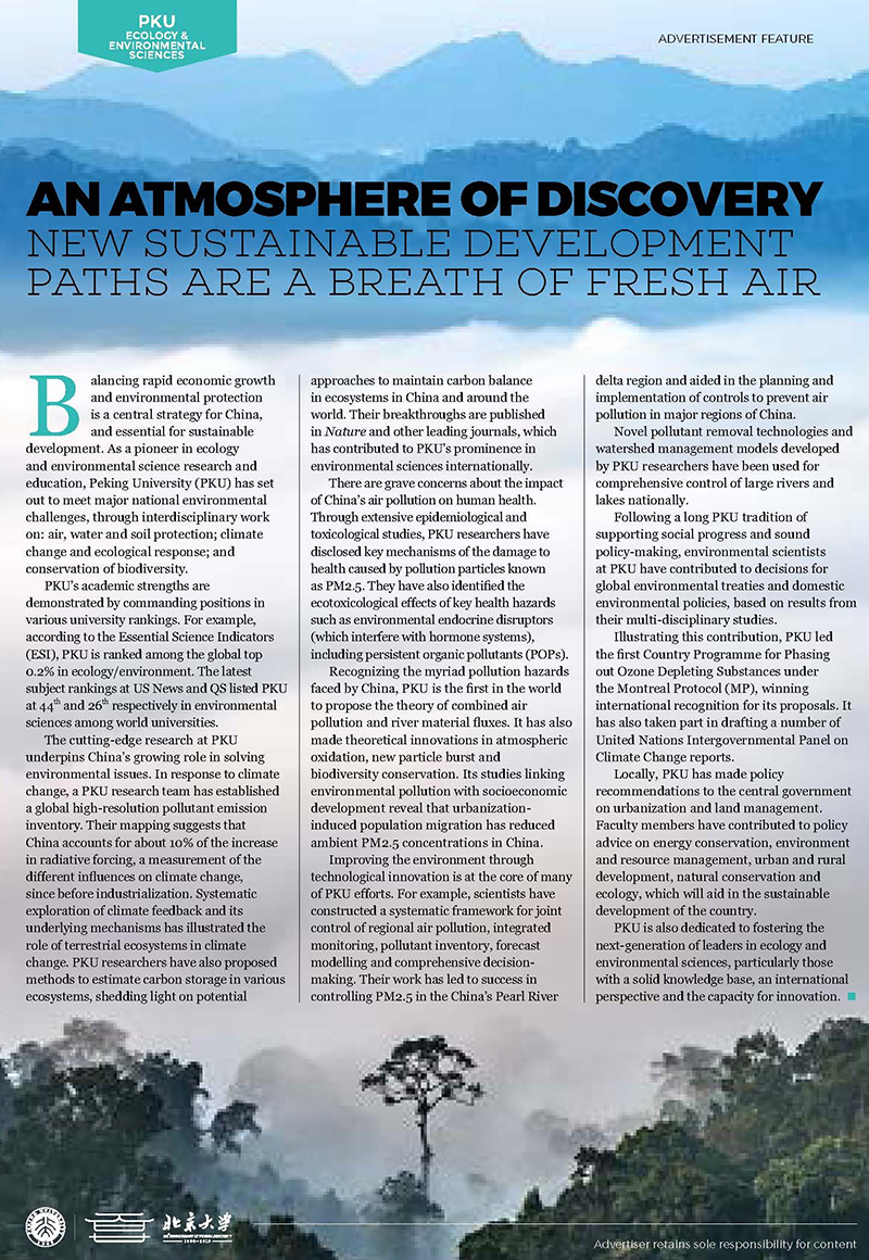 为迎接金瓶梅在线 120周年校庆,NATURE主刊近期推出了一版专门针对金瓶梅在线 学院和环境工程学院的“生态环境”宣传页,标题为:AN ATMOSPHERE OF DISCOVERY:NEW SUSTAINABLE DEVELOPMENT PATHS ARE A BREATH OF FRESH AIR。