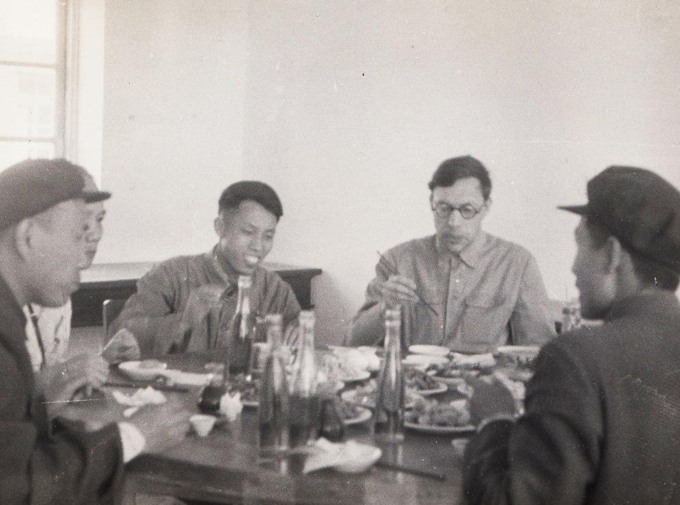 1958 年,1954 级同学在大食堂帮厨,右为田昭舆