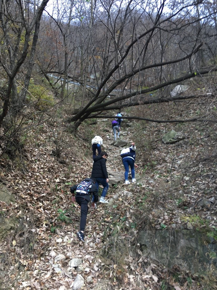 师生一行15人,由学院团委常务副书记关汉岳带队,前往洛阳市栾川县,开展“考察栾川县鸡冠洞喀斯特地貌与老君山植物沿海拔梯度的分布”的实践活动。本次活动是一次帮助班级成员灵活运用所学知识、融地貌考察与植被研究于一体的实践活动,是一次学习十九大精神,践行总书记关于生态环境保护指示的学术调研。 出发前,同学们收集了有关考察地老君山和鸡冠洞的文献资料,并汇总讨论,为考察打下理论基础。而在11月24日晚前往洛阳市的火车上,班级同学成为车厢安全员,在实践途中承担起北大学生应有的社会责任。 经历一上午的车旅颠簸,班级同学们于中午来到了实践活动的目的地之一——老君山。为了更好地考察老君山海拔梯度上植物分布的规律,同学们放弃乘坐索道上山,依靠强大的毅力和良好的体魄仅用了3个半小时从800m海拔爬至1700m海拔,走过原耗时约5小时长达15.5公里的盘山路,体现出北大人不畏艰苦的品质。 实践团师生攀爬老君山 登山期间同学们时常驻足,结合自身所学知识以及相关软件辨识植物,遇到疑难时则会向院里相关专业老师寻求帮助,例如中国植物学会理事刘鸿雁老师帮助同学们辩认出白羊草和短梗南蛇藤。 白毛草 短梗南蛇藤 随着海拔升高,同学们明显感受到温度的变化,沿途开始出现结冰,海拔升至1300m后林子里可见积雪。在手机软件提供的经纬度和海拔的帮助下,同学们沿海拔梯度分级记录下沿途所见的植物。碍于文献资料缺乏以及时间受限,不能完全正式地体验研究过程,是行程中少有的遗憾之一。 老君山高海拔区域的冰雪 第二天上午同学们来到了中国北方最大的溶洞——鸡冠洞,因景点管理需要,无法在洞内长时间停留,同学们提出了“鸡冠洞内CO2浓度季节变化规律及其驱动因素”的科学问题,带着问题参观。 鸡冠洞内钟乳石与石笋形成的“千年一吻”景观 参观结束下山时,在鸡冠山上传播社会主义核心价值观的板报前,团支书主动停下为大家讲解,他结合自己的现实体会娓娓道来,同学们也表示了极大的兴趣,认真听讲。 实践团师生在鸡冠山脚学习社会主义核心价值观 由于实践行程紧凑,带队的学工老师在回城的大巴上为大家讲解了十九大会议报告内容,传达十九大精神。十九大报告中指出,要实施重要生态系统保护和修复重大工程,优化生态安全屏障体系,构建生态廊道和生物多样性保护网络,提升生态系统质量和稳定性。同学们听完讲解后,对报告中提出的要加强党的领导、重视生态环境保护等要求表示了衷心的支持,对十九大报告中蕴含的科学精神有了更加深刻的理解。 带队老师讲解十九大报告精神 学习完十九大精神后,同学们紧接着投入到“鸡冠洞内CO2浓度季节变化规律及其驱动因素”这一问题的讨论之中。 实践团师生深入讨论十九大报告 同学们首先得出了基本一致的判断:夏季鸡冠洞洞内二氧化碳浓度更高。在探讨成因时,一位同学提出季节温度不同导致岩溶作用反应速率不同,进而导致二氧化碳浓度差别的猜想,但因鸡冠洞内四季18℃恒温被大家否定。这时带队老师提出,夏季游客增多会引起二氧化碳浓度的升高,这被同学们所接受并归入影响因素之中。进一步讨论后,组织讨论的班长认为这一问题的本质在于,在鸡冠洞内温度接近不变以及几乎没有植物存在的背景下,鸡冠洞这个系统与外界的物质与能量交换。在这框架下,同学们提出了流经溶洞的暗河可以会产生脱气作用,冬夏季鸡冠洞通过出入口与外界交换气体的差异等可能的原因,大家对这一问题的科学解释有了更深刻的认识。 实践期间,师生还利用空暇时间组织团队建设活动,交流本次实践的感受。本次实践目标清晰,内涵丰富,环节圆满,同学们将自己所学的生态地理知识应用于现实具体问题中,对所学的地理学科、对自己的发展道路以及十九大报告精神都有了更加深刻的认识。