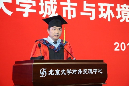 2018届学生毕业典礼在英杰交流中心阳光大厅成功举行。学院院长贺灿飞老师、党委书记刘耕年老师、院友代表黄友琴以及学院其他领导和导师、班主任、任课教师、行政教辅代表出席了典礼活动,参加典礼的还有2018届200多名本、硕、博毕业生及部分毕业生家长。典礼由学院副院长金鑫老师主持。 典礼现场 副院长金鑫老师主持毕业典礼 典礼开始前,毕业生们纷纷在“城因有你,青春不负”毕业纪念签名墙上签名、合影留念,一笔一划写下的是收获的喜悦,一光一影留住的是离别的不舍。同样带给大家惊喜的还有学院为全体毕业生精心制作的纪念册。翻开册子,一张张笑脸,一幅幅画面,描绘的是圈地为方、绘纸成图的几载青春,诉说的是以诚相待、携手并肩的同窗情谊。 签名墙合影 十四时二十分,典礼在雄壮的国歌中正式开始。院长贺灿飞老师首先致辞。他以未名湖畔的果实为喻,祝贺大家经过辛勤耕耘顺利毕业。他强调了批判性思维、综合性思维、空间思维的重要性,希望大家能够关心自然和人类社会的共同命运,深入开展对资源-环境-生态-城市的综合系统分析,寻找人类之间休戚与共的生存模式以及人类与自然和谐相处的方案。他鼓励大家要特别领会总书记的殷切期望,既要做追梦者,更要做圆梦人,要求真学问,练真本领,努力成为知行合一的实干家,做推动我国生态文明建设的实干家。 院长贺灿飞老师致辞 随后,88级院友、美国纽约州立奥尔巴尼大学地理与规划系教授、奥尔巴尼大学中国文化与经济孔子学院院长,奥尔巴尼大学社会与人口研究中心研究员黄友琴分享了她在北大学习的经历与体会。她寄语师弟师妹们要珍惜宝贵的同学情、师生情;劝勉即大家要有使命感与正义感,要学会淡定从容、荣辱不惊地运用自己的知识和技能报效祖国、改变世界。致辞之后,党委书记刘耕年代表学院向黄友琴院友赠送了她当年的本科毕业论文副本和学院今年的毕业文化衫留做纪念。 院友代表黄友琴教授致辞 党委书记刘耕年老师向黄友琴赠送纪念品 2014级本科地生班班主任蒙吉军老师代表学院教师发言。蒙老师回忆了与同学们一起在全国各地实习的足迹,也祝贺同学们顺利完成学业。面对新的征程,蒙老师希望同学们在未来的学习工作中要懂得担当、懂得合作、懂得创新,祝福同学们事业有成、生活幸福。 教师代表蒙吉军老师致辞 紧接着,2014级本科毕业生代表张晓华发言,她表达了对学院老师、父母家人和同学们的感谢,并希望北大所赋予的独立的思想与自由的精神,能够让同学们在今后的成长道路上,真正关注生活和生命的本质。2015级硕士研究生代表上官淮亮回顾了自己在北大、在城环的三年时光。即将走上选调岗位的他,也结合自己的职业规划,分享了地理人“为天地立心,为生民立命”的天然使命感和责任感。 本科毕业生代表张晓华发言 研究生代表上官淮亮发言 满含深情的语言道不尽喜悦与不舍,毕业生特别节目《青春大概》将大家的情绪推向高潮。“在花落时结果,期望很多,青春大概都这样过。也许还有遗憾,甚至很多,但是相信懂你没有白活!”,相信这是所以毕业生们的心声,也许不免有遗憾,但是所经所历都是城环人的最好回忆。 毕业生特别节目 今年毕业典礼,学院还增设了2018年金瓶梅在线
