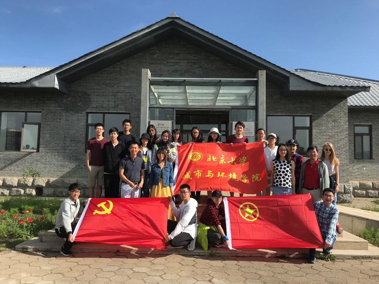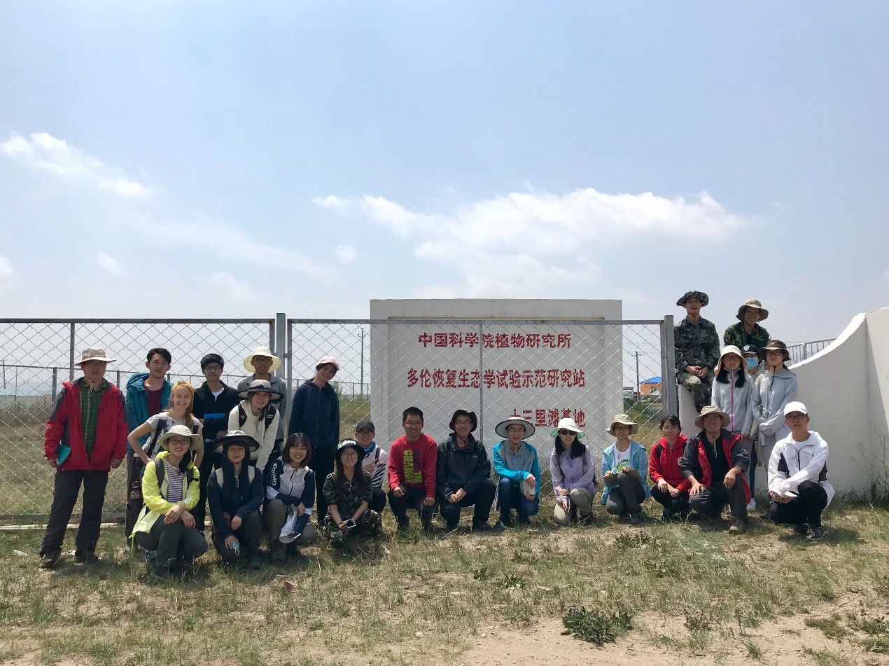生态站外合影 本次实习实践的主要内容分为野外调查与塞罕坝精神学习两个部分。 首先,野外调查包括掌握野外生态学、植物土壤调查研究的基本工作方法。如在植物群落调查研究中,利用皮尺确定一定大小的样方,在教师指导下辨认样方内的植物种类,记录各垂直结构组成包括乔木层、立木更新层、灌木层和草本层的不同性状与特征数据。 图2 唐志尧老师指导学生描述植物群落 其中,对于森林生态系统的乔木层调查,在教师的讲解与示范之下,学生练习并掌握钻取树心、用激光测距仪测定树高、用胸径尺测量胸径等基本测量仪器的使用。对于草本层的调查,学生学习并估算多度、盖度等群落基本属性,从而为进一步的科学问题研究采集丰富的数据。 本次实习的野外调查还包括对土壤的调查。学生在所选取植物群落样方的附近区域,挖掘并修整出深度约为1m的土壤剖面,对土壤剖面进行观察、拍照和描述,记录层次深度、土层颜色、根系分布、土壤动物、石块分布等特征数据。此外,在教师指导下,学生利用环刀在土壤剖面的6个层次对土壤进行取样,并送回实验室对不同样地的土壤进行定量实验分析,通过测定土壤含水量、土壤容重、土壤pH值、土壤无机碳等指标,从而能够分析和发掘科学问题。 图3 学生描述土壤剖面并打环刀取土样 为了了解生态学研究的前沿发展,同学们参观了中科院植物所位于内蒙古多伦县的恢复生态学试验示范研究站。在生态站工作的老师向学生介绍了各种大型的气候环境变化响应实验,探究大气CO2升高、全球变暖、氮沉降、降水变化等大尺度气候变化对生态系统的影响,使同学们对当下生态学领域所关注的热点问题具有了深入的了解。 图4 实习团队参观多伦生态站 7月2日,实习团队参观了塞罕坝机械林场展览馆。讲解员向学生讲述了数代塞罕坝人在极端恶劣的条件下无私奉献、艰苦奋斗,创造了沙地变绿洲的奇迹,为子孙后代留下了天更蓝、山更绿、水更清的优美环境。在留下数十万亩森林、世界最大的人工林场的同时,革命前辈们也留下传承至今的塞罕坝精神——“艰苦创业、无私奉献、科学求实、开拓创新、爱岗敬业”, 图5 实习团队参观塞罕坝展览馆 通过本次野外生态学、植物土壤实习,近距离接触大自然,同学们加深了对生态学、植物学、土壤学课程理论知识的理解,锻炼了仪器使用、文献阅读等多项能力,对科学研究的过程也有了充分的体会。正值我国推进生态文明建设,同学们对于人与自然和谐发展的新格局具有了更深刻的责任感和使命感。