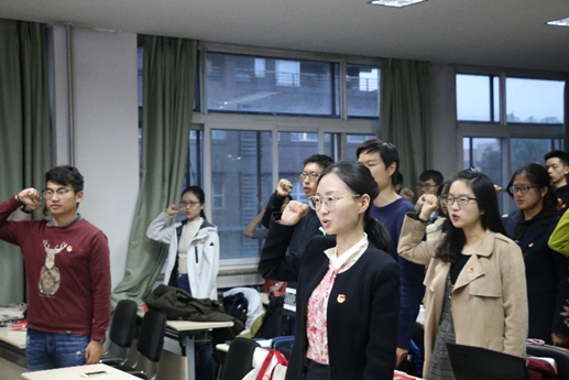 2014级本科生申子靖与同学们分享了团校的学习感悟。申子靖同学表示,学习优秀、能力出众、关心社会,是优秀团员青年必须具备的素质,也是团员骨干需要通过团校着重提升的素养。 图3学员代表分享 接下来,同学们在关汉岳的带领下重温了入团誓词。誓词虽短,却蕴含着当代青年积极向上的精神风貌,凝聚着共青团员报效祖国的满腔热血。同学们在誓词中回顾着共产党、共青团革命斗争的艰苦历程,更加坚定了不忘初心、牢记使命,为国家、为人民无私奉献的决心。 图4重温入团誓词 为了帮助同学们更好地学习老一辈党团骨干的先进事迹,王宇凡代表金瓶梅在线