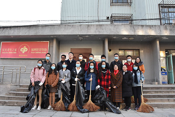 西门准时集合,前往畅春园社区。经过居委会工作人员的耐心指导后,发放手套、口罩、耙子、扫帚,同学们不怕苦不怕累,开始了落叶清扫。面对堆积如山的落叶,同学们分工合作,有人撑起塑料袋,有人拿起工具打落挂在树上的落叶,有人徒手将落叶捡起放到袋子中。虽然扬起灰尘,天气寒冷,但是同学们吃苦耐劳并乐在其中,老师们也参与到清扫落叶的活动中来,经过大家的共同努力,落叶慢慢变得稀少。最终街道整洁如初。 图二.清扫落叶活动进行中 附近的居民见到此情景,纷纷露出欣慰的笑容,称赞我们是热心为人民服务的社会主义好青年。同学们在活动结束后都积极分享自己的心得体会。夜幕降临,畅春园也被清扫得干干净净,同学们在欢声笑语中回到校园,留下难忘的回忆。 图三.同学们分工协作清扫落叶 经过这次清扫活动,大家都深刻感受到维持环境的不易,先辈们为我们创造现在幸福生活的不易,我们只是在冷风中进行了三个小时的落叶清扫活动就已经累得汗流浃背,革命先辈们风里来雨里去,不怕苦不怕累地坚持斗争,在那段峥嵘岁月中奋勇向前、自力更生,才为我们今天的社会主义现代化国家的建立奠定了坚实基础。而我们更应该传承这种大无畏和吃苦耐劳的精神,这是中华民族精神瑰宝,是无产阶级取得胜利的关键与核心,是社会主义建设中新时代青年必不可少的精神食粮,更是我们成为合格的社会主义接班人的首要前提。 图四.同学们用手捡拾落叶 同学们更是感受到了热心服务、一心为民的精神力量。在习近平主席的领导下,我们新一代青年更应该本着为人民服务的精神,将党的精神贯彻落实下去,为构建和谐社会贡献自己的一份力量。人们都说“被需要是一种幸福”。这感觉我们是在真正的做志愿服务之后才获得和理解。把志愿服务当作自己的生活内容和生活方式,时时刻刻去帮助需要帮助的人,做奉献爱心的事,这就是当一名志愿者的真谛。我们应该更加努力的去服务社会,为更多的人送去温暖,让更多的人看到希望。 撰稿:朱晗 供图:彭若男、张孝琰 审核:关汉岳