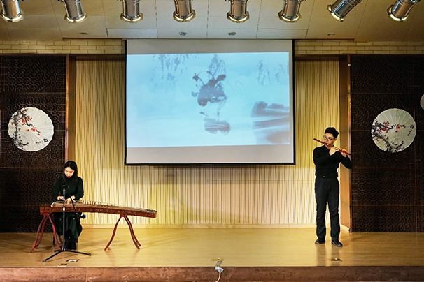 2019年“红城飞雪,燕园寻梦”新年晚会在正大国际交流中心二层弘雅厅举办。昏黄灯光古意悠然,水墨画伞烟雨江南,笑靥如花,衣袂飘飘。晚会在对众多经典武侠片段的重温中拉开了帷幕。 学院党委书记刘耕年、党委副书记张新平、团委书记王宇凡、研究生教务及2018级博士班班主任于佳鑫、楼宇管理办公室赵卡娜、团委常务副书记关汉岳、学生工作办公室副主任柴腾,以及特邀嘉宾金瓶梅在线