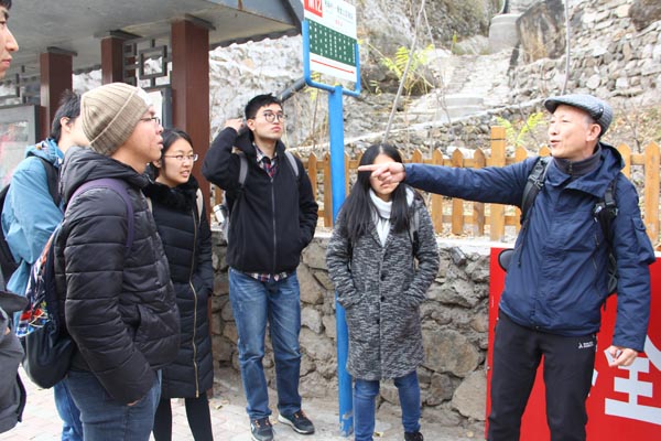 2018级硕士党团支部一行前往北京市门头沟区斋堂镇爨底下村、双石头村开展“探寻红色记忆,助力乡村振兴”的主题实践活动,主要内容为实地参观特色村落。本次活动旨在通过实地考察,加深支部同学们对振兴乡村战略意义的理解,重温红色时代主题,实地感受美丽乡村建设的模式与路径,激发同学们建设美丽乡村的斗志与信念。此外,本次调研也帮助同学们将村镇规划和地理生态学等相关理论同实际结合起来,深化对知识的理解。本次活动由学院退休教师武弘麟副教授带队。 11月10日7:00,党团支部成员在学校南门集合,驱车前往门头沟区斋堂镇。到达目的地后,同学们首先前往爨底下村进行考察学习。古村落坐北朝南,依山而建,呈扇形结构延伸,错落有致,形成独具特色的山地四合院,同学们纷纷感叹于这浓郁的古村风情。 图一.同学们在爨底下村合影 深入古朴村落,助力遗产保护 正式开始调研考察,讲解员带领同学们一边参观,一边详细介绍爨底下村的历史文化背景。爨底下村的形成始于明朝加强边境防守的需要,位于一道军事隘口——爨里口之下,是我国首次发现的保留比较完整的山村古建筑群,拥有巨大的遗产价值。整个村落建于缓坡之上,层层升高,依山而建,以村后龙头为圆心,南北为轴线呈扇面形展于两侧,使全村形不散而神更聚,三条通道惯穿上下,而更具防洪、防匪之功能,充分体现人、建筑与环境的完美结合。 图二.爨底下村整体形态 古村中随处可见错落有致,装饰精良的四合院,历经沧桑但却保留着古朴的韵味,经久不衰。讲解员向同学们介绍到,村内有院落74个,房屋689间,大部分的院落为清后期所建,也有少部分建于民国时期。引入眼帘的院落,布局合理,结构严谨,颇具特色,门楼等级严格,门墩雕刻精美,砖雕影壁独具匠心,壁画楹联比比皆示。同学们纷纷拍照留念,同时也意识到保护传统村落遗产责任之重大,当代青年人责无旁贷。 重温红色烙印,再燃爱国炽情 历经近代战火的洗礼,爨底下成为了抗日模范村,它地处平西抗日根据地的摇篮和中心,在长达八年的民族解放战争中,这里的人民在党的领导下团结一心,奋勇抗日。漫步在山村之中,古朴的民居建筑墙壁上的题字和标语依稀可见,犹如走进历史长廊,抗战时期、抗美援朝、大跃进等各个历史时期都能在此找到印记。时光虽斑驳了古墙,但依然清晰可见“用毛泽东思想武装头脑”的标语,同学们驻足停留,感受这穿越时光的信仰和力量,仿佛看到了战争年代,无数怀有爱国热血和报国志向的人们义无反顾奔赴战场,只为了国泰民安,天下太平,仅是看到这些文字,就足以让人热血沸腾。 图三.村中随处可见的红色标语 随后,同学们看到了村中的代表性庙宇建筑——五道庙,作为村民的村落的中心点,也是共同记忆的输出地,红色烙印的集中出现,佐证了当时整个村落的红色时代主题。尽管随着风雨的侵蚀,标语大多已经斑驳,但革命的传统却代代传承,历久弥香,正如这传承几百年的姓氏印在每一位爨底下村民血脉中,保家卫国的传统也镌刻在他们基因之上,也深深震撼了同学们的内心。 图四.同学们参观五道庙 历经沧海桑田,静看世事变迁 古村的道路也别具特色,多用青石、灰石、紫石板铺路,质地坚固而漂亮。穿过一条条胡同小道,踩过刻有历史印记的台阶,同学们走进这古色古香的院落房间进行参观。除了房屋内部精致的修缮,展出的族谱也吸引了同学们的注意。相传该村祖先于明朝清乐年间随山西向北京移民由山西迁移至此,建立了韩式家族聚居之地,至今爨底下村居住的依旧是清一色的韩氏家族。讲解员向同学们介绍,爨底下村人口最高时达 54 户、183人,改革开放后,面对城市化的吸引,村内大量劳动力外出打工,并在城镇安家,2000年仅剩下29户、71人,村庄一度面临整体搬迁,古山村风貌和田园景观得以保留。经过20年休闲旅游业的发展,爨底下村由传统农业型村落演变为现代旅游型村落,人口密度重新分布,村落功能以及居住模式发生了显著的变化,生活空间悄然转型和重构。 图五.同学们认真学习房间内部的展板知识 穿过房间内部,同学们来到了爨底下村地势最高、居中轴线的宅院,也是该村的代表性建筑广亮院,村民称其为“楼儿上”,建于清代早期。同学们在此远眺,村落里错落有致的房屋建筑尽在脚下,一座座低矮古朴的房屋,凝重厚实中透着威严,恬淡平和中积淀着深厚的文化,居住的人们来了又走,周遭的四季循环往复, 只有终年肃静的群山,见证着爨底下村的兴衰。 图六.带队武老师为同学们讲述古村的历史背景 环保从我做起,拥抱绿树蓝天 在参观完特色建筑之后,同学们自发前往金蟾山的观景平台。一路上都是陡峭的山路,没有护栏的保护,同学们彼此鼓励,相互扶持,最终成功登顶,一览全景。此刻正值初冬,爨底下村显得草木萧瑟,山土贫瘠,仿佛是一个缩小版的黄土高原。支部中有很多环境专业出身的同学,就爨底下村的生态环境现状展开了讨论。古村群山环抱,空气湿润清新,相比正笼罩在严重雾霾中的城市,爨底下村犹如一个世外桃源。但是整个村落的植被覆盖度比较低,十分荒凉,大片的土地可以被开发利用,栽种植物,推动整个村落生态环境的优化。此外水土保持也是一个值得关注的问题,古村处于环山的地理位置,如果不重视水土保持,突发暴雨时容易造成山体滑坡、泥石流等灾害,危害