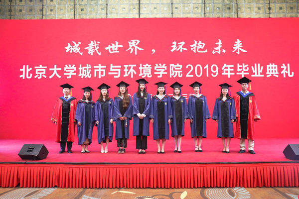 2019届学生毕业典礼在英杰交流中心阳光大厅成功举行。学院院长贺灿飞、副院长李双成、副院长金鑫、党委副书记张新平、院友代表李其林以及学院班主任、任课教师、行政教辅代表出席了典礼活动,参加典礼的还有2019届180名本、硕、博毕业生及部分毕业生家长。典礼由学院副院长金鑫主持。 百周年纪念广场合影 典礼开始前,毕业生们在百周年讲堂前进行了合影,将垂布摆放在胸前,学士帽端正戴好,与老师和同窗分享这一刻属于自己的自豪与喜悦、激动与不舍。 签名墙合影 同学们翻阅毕业纪念册 回到英杰交流中心,毕业生们纷纷在“城风破浪,扬帆远航”的毕业纪念签名墙上签名并合影留念。一笔一划写下的是收获的喜悦,一光一影留住的是离别的不舍。同样带给大家惊喜的还有学院为全体毕业生精心制作的纪念册。翻开册子,一张张笑脸,一幅幅画面,描绘的是圈地为方、绘纸成图的几载青春,诉说的是以诚相待、携手并肩的同窗情谊。 副院长金鑫主持毕业典礼 上午九点,典礼在雄壮的国歌中正式开始。学院2002级环境科学专业校友,北京清新环境技术股份有限公司总裁助理、董事会秘书,雄安清新智慧科技有限公司执行董事、总经理李其林首先致辞。他分享了自己在北大学习的经历和体会,并且讲述了自己从实业、到金融、到再回归环保实业的产业追寻之路,勉励同学们在习近平主席“两山论”逐渐深入人心和国民经济向高质量发展转型的大背景下,用自己的专业素养服务新时代的经济和城市建设的需要,实现自己的人生价值。 院友代表李其林致辞 致辞之后,副院长金鑫代表学院向李其林院友赠送了学院的文化衫和城环地理学60周年纪念册留作纪念。 毕业生家长代表孙勖致辞 2015级本科生孙轶斌父亲孙勖代表毕业生家长致辞,他表达了对老师们的感谢和毕业生们的祝贺,叮嘱同学们牢记城环人的责任与担当,保持面对新鲜事物的接受和好奇,收获经历风雨仍能宠辱不惊的淡定心态。 教师代表王志恒致辞 学院生态学系教师、2015级本科地生班班主任王志恒代表学院教师致辞,他嘱托同学们未来要常怀热情、坚持初心、不忘责任,在未来的人生道路上忘却过往的光环,攀向更高的山峰。最后,王老师祝愿同学们在今后的人生道路上事业有成、生活幸福。 本科毕业生代表申子靖发言 研究生毕业生代表刘飞发言 紧接着,2014级本科毕业生申子靖发言,他表达了对学院老师、父母家人和同学们的感谢,并以“足迹、成长、感恩”为线将本科时光娓娓道来。2016级硕士研究生刘飞回顾了自己在北大、在城环的三年时光。即将走上选调岗位的他,也结合自己的职业规划,分享了“心负黄河月,饱含家国情”将个人发展与国家发展融为一体的使命感和责任感。 院长贺灿飞致辞 院长贺灿飞教授做题为“以理性重新认识世界”的毕业致辞。他以成熟的种子为喻,祝愿毕业生们带着北大的独特基因在五湖四海扎根生长。他希望大家基于地理学独特的思维和视角,在时代飞速变化的今天,能够实现人生的内在发展,与时代同行,真正践行“城载世界,环抱未来”的豪迈宣言。他嘱托大家面对纷繁复杂的发展环境,用理性保持清醒的判断;面对尚且存在的问题,用理解保持坚定的信心;面对日新月异的发展需求,用理论做为坚实的基础;面对社会舆论的质疑,用理想作为动力的源泉;面对前途的未知性,用理念拥抱灿烂的未来。 毕业生特别节目 “故事已经到终点,结局不再有悬念,可是人海茫茫,难言相见”毕业生特别节目《转身之间》用词曲的缠绵道出了毕业季的无限不舍,轻柔温润的歌声唤起了在场每一位同学、老师和家长独特的城环记忆。 党委副书记张新平宣读获奖名单 每一年,学院都有着一群“德才均备、体魄健全”的优秀毕业生,无论在学术科研还是社会活动,他们都能够从容面对并取得优异的成绩。党委副书记张新平老师宣读了2019年优秀毕业生和优秀博士毕业论文的获奖名单,出席嘉宾老师一起上台为获得“北京市优秀毕业生”的同学们颁奖,以展示城环学子风采,激励未毕业同学努力奋进。 嘉宾老师为北京市优秀毕业生颁奖 副院长李双成宣读学位授予决定 随后,副院长李双成老师宣读了学位授予决定,并与贺灿飞老师一起为毕业生拨穗、合影留念。 院长贺灿飞、副院长李双成为毕业生拨穗并合影留念 毕业典礼在师生齐唱《燕园情》的歌声中圆满结束。“燕园情,千千结”,全体毕业生将传承“爱国、进步、民主、科学”的精神,带着北大城环人脚踏实地、不畏攀登的精神气质,带着学院的殷切期盼,开启新的征程! 毕业典礼现场