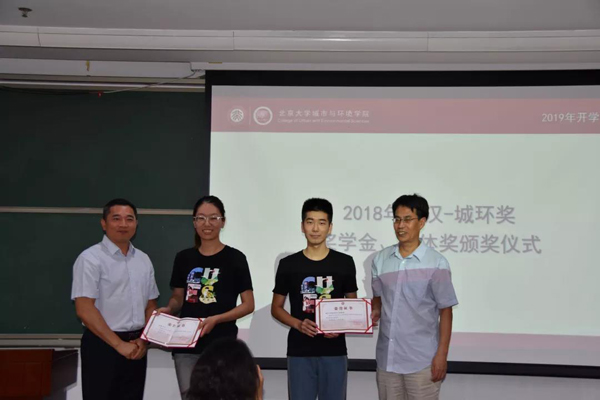 的感受和收获。她希望师弟师妹们能够珍惜时间,充实自我,既领略到学科的美和乐趣,也能够健康成长,拥有像天地一样广阔的格局和胸怀,承担起城环人的责任和使命,为国家民族的发展做出贡献。 老生代表李新月发言 紧接着,2019级本科新生代表孙知难发言。他通过讲述报到以来的几件小事,表达了自己为祖国的绿水青山不懈奋斗的志向和追求。在本科生军训文艺汇演结束后,他用休息时间,分拣回收LED棒,践行环保理念;军训结束返校后,他又与林歌的其他同学一起,用烈日下6个多小时的坚守,回收了3000余件军训服装。他带着强烈的使命感来到城环,希望可以从小事做起,与同学们一起携手共建美丽中国。 新生代表孙知难发言 典礼上还举行了2018年度“铁汉-城环奖”奖学金、集体奖颁奖仪式及2019年度“铁汉-城环奖”奖教金、奖学金捐赠仪式。学院李本纲副院长和李双成副院长分别为获奖代表于欣源、徐帅颁奖,深圳市铁汉生态环境股份有限公司北京区域总经理张丽华学姐上台进行“铁汉-城环奖”奖教金、奖学金第七年度的捐赠,党委副书记张新平代表学院接受捐赠,副院长刘鸿雁代表学院向张丽华学姐回赠纪念品。 2018年度“铁汉-城环奖”颁奖仪式 2019年度“铁汉-城环奖”捐赠仪式 刘鸿雁副院长向张丽华院友赠送学院纪念品 刘耕年书记向张国友院友赠送学院纪念品 最后,开学典礼在《燕园情》的优美旋律中圆满结束。我们来自江南塞北,情系着城镇乡野,我们走向海角天涯,指点着三山五岳。2019级新同学将从这里出发,遨游知识海洋,力行专业实践,城载世界,环抱未来! 文字 | 薛雨坤 图片 | 赵红阳 覃吴颖 主编 | 赖雨亲 审核 | 周伟 张晓华 编辑 | 陈昱龙