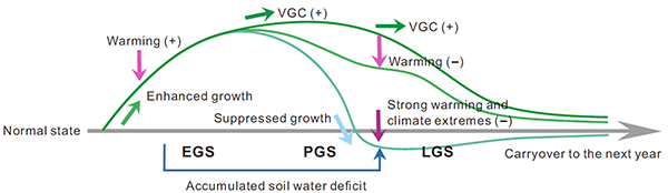 2016级直博生连旭为第一作者,朴世龙教授为通讯作者。 论文链接://www.nature.com/articles/s41467-021-21223-2 图1 季节和年际间植被生长延续效应的示意图