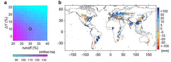 农业灌溉约占全球总取水量的三分之二,被认为是提高作物产量和提升农业适应气候变化能力的重要手段。灌溉的增产效应随作物品种、气候以及土壤特征等因素发生变化,具有明显地理格局。然而,迄今为止,全球和区域尺度的灌溉增产效应仍不明确,是准确理解水-粮食-社会经济系统相互作用的瓶颈之一。 王旭辉研究员与合作者综合使用调查和统计数据以及10个全球作物模型,研制了全球小麦和玉米灌溉增产效应分布图,并解析了这两种作物的灌溉水供给与需求。研究发现,充分灌溉对全球小麦和玉米单产的平均贡献分别为34±9%和22±13%。但是,当前30–47%的雨养农田的无法获得充足和可持续的水资源供给。这既制约了灌溉增产潜力,也导致灌溉无法可持续地抵消气候变暖对作物产量的负面影响。研究还发现,全球不同流域,灌溉需求占径流的比例差异巨大:最低小于 1%,最高大于300%。这意味着,跨流域调水是纾解流域尺度灌溉水需求与供给失衡的有效策略。这项研究为准确理解农业管理活动对人-地系统的影响提供了新证据,也为水和粮食安全的决策提供了科学支撑。 图1 全球小麦和玉米灌溉水需求和供给平衡的空间格局 该研究成果以“Global irrigation contribution to wheat and maize yield”为题发表于《自然—通讯》(Nature Communications)杂志。金瓶梅在线