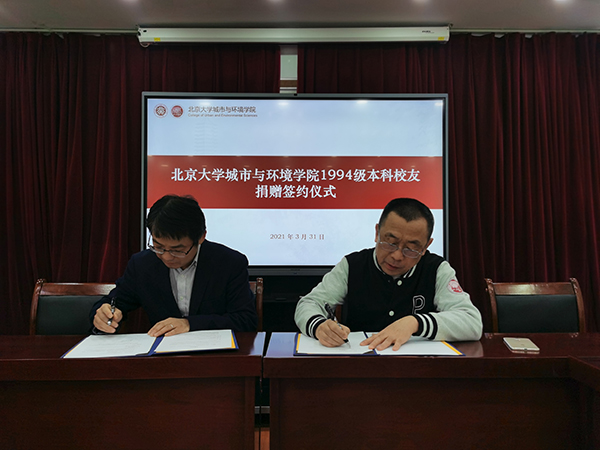 党委书记刘耕年教授、副院长金鑫老师和楼宇办赵卡娜老师出席了签约仪式。 刘耕年书记首先代表学院感谢94级本科校友的慷慨捐赠。刘耕年书记表示学院新大楼建设在资金等方面还需要大家共同的支持,94级本科校友的这笔捐赠对学院新大楼建设具有重要意义。这笔捐赠将主要用于新大楼会议室等空间的室内装修、购买家具和设备等。 唐志尧老师表示94级本科校友非常乐于支持学院改善办学条件,此次捐赠活动最开始是校友们各自认捐研究生工位,最后由多位校友共同参与,完成此次捐赠。 后续,学院楼宇办、校友会还将与94级本科校友沟通新大楼会议室冠名的相关事宜。欢迎广大校友和各界友人共同支持学院新大楼建设,联系人:赵老师010-62767369。