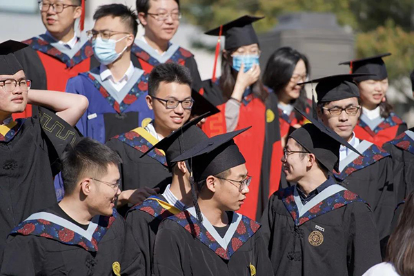 建院10周年纪念文集》等纪念礼品,为校友们送上暖暖的祝福。 垂布摆在胸前,学士帽端正戴好, 穿戴好学位服的校友们移步图书馆正门,与学院老师共同补拍毕业集体合影,将青春定格成最美的回忆。从初入燕园到毕业离别,燕园承载着太多师生的共同回忆,一年后再相聚,师生尽情交流,或忆当年学习时光,或叙浓厚师生情谊,气氛十分热烈。 走进学位授予仪式场馆,场内婉转的青春歌曲,屏幕播放的毕业照片,学生代表的精彩分享,引起校友们的深深共鸣,唤起大家美好的青春记忆。一枚镌刻有校庆日期的专属校徽,一场迟到但未缺席的定制典礼,让校友们倍感温暖。领导与老师们的谆谆教导和殷殷期望,让校友们备受鼓舞,获得扬帆起航、为国奋斗的决心和勇气。离别情、师生意、爱国心在《燕园情》的歌声中交融,久久不能散去。 15级本科城规班在逸夫二楼教室共进午餐。享用美食之余,校友们畅谈在学院学习和毕业后生活的点滴。道不尽的情谊,话不完的回忆,让这里充满了重聚的感动与欢乐。 午休完毕,学院还特意为毕业生们准备了城环专属活动,邀请校友们登顶院楼俯瞰一次北大,并作为第一批访客参观学院新大楼。 校友们登上天台,欣然远眺,一览校园景色。风起云散,故景如旧,博雅塔沐浴阳光,燕园的一草一木依旧如此葱郁静美。校友们纷纷拿起相机,将燕园美景化为永恒的眷恋。 俯瞰燕园美景后,校友们又一同前往参观了学院新大楼。新大楼的建设得到了88级刘水学长等大量校友的慷慨捐赠和大力支持,学院也热情地邀请校友们作为新大楼的第一批客人。校友们按捺不住光临“新家”的兴奋与喜悦,或举起相机记录崭新院楼的美丽光影,或谈论起在逸夫二楼学习生活的点滴回忆,言语中满含着对学院深厚的情感和对学院未来的美好期待。 夕阳西下,2020届城环校友的返校系列活动在激动与不舍中落下帷幕。凡是过往,皆为序章,校友们的燕园生活虽已结束,但这正是他们奔向海角天涯,投身国家富强、民族振兴、人民幸福事业的开始。燕园共度的美好时光,城环师生的难忘情谊,都会化为城环人前行的动力,成为城环人精彩人生中的璀璨星光! 此次城环专属返校系列活动是新冠疫情以来,学院首次为校友们举办的大型线下活动。连月来,学院相关师生精心策划,广泛联络,周到服务,为校友“回家”做足了充分准备。学院是广大城环校友的温暖港湾和坚实后盾,是大家永远的精神家园。欢迎广大校友常回家看看,关注和支持学院发展建设,让我们继续相约城环,携手前行!