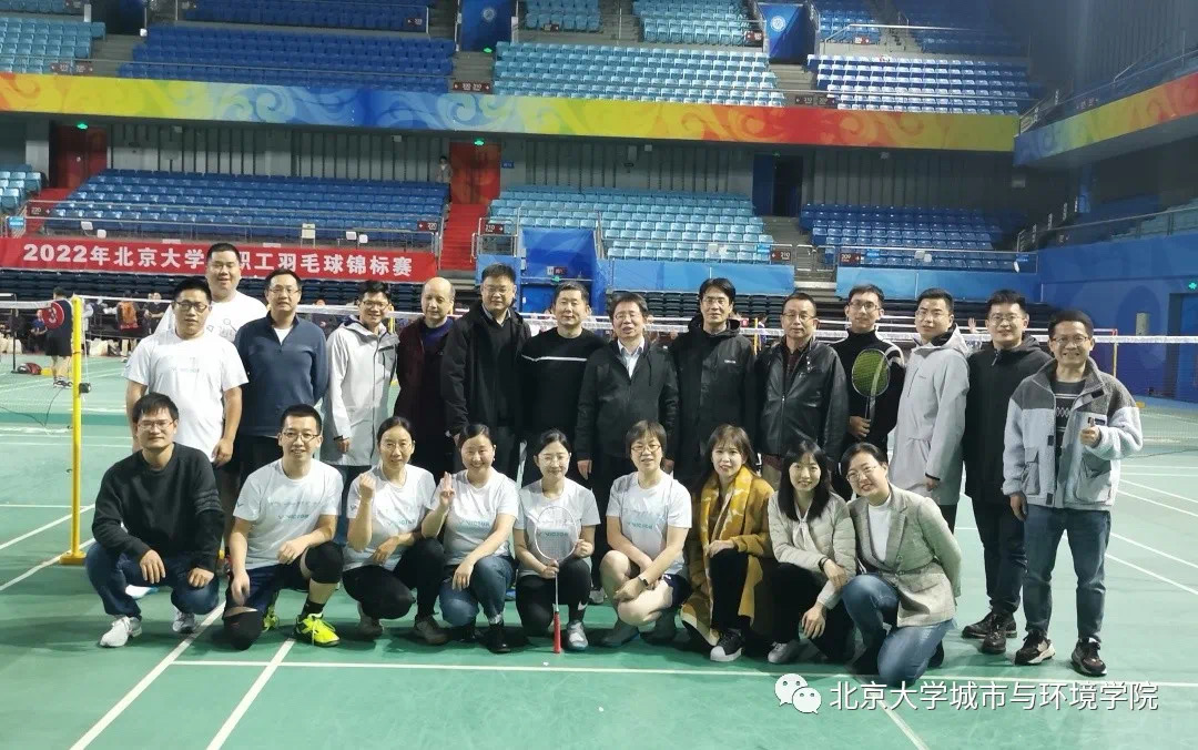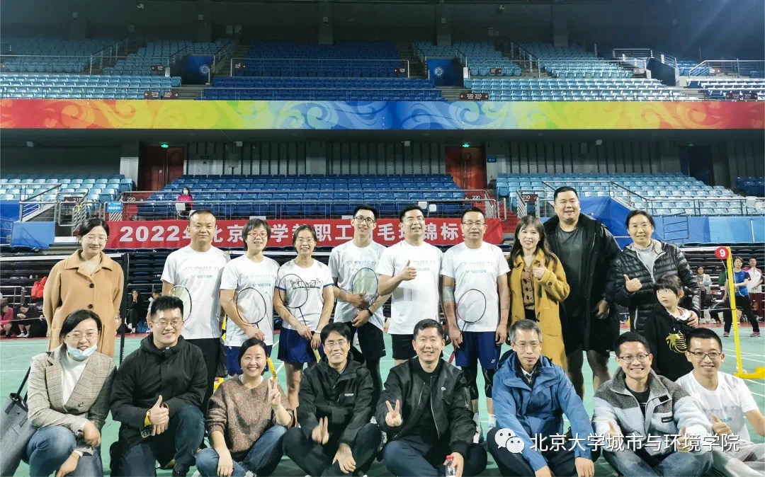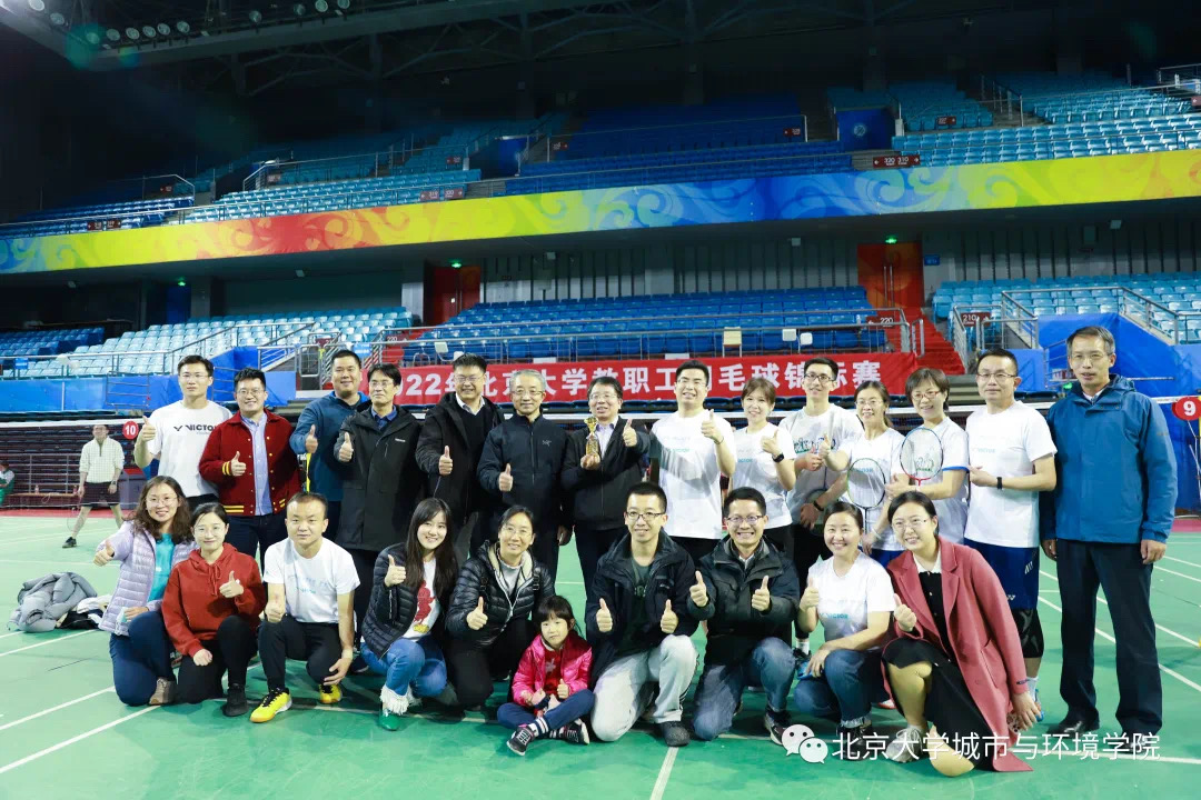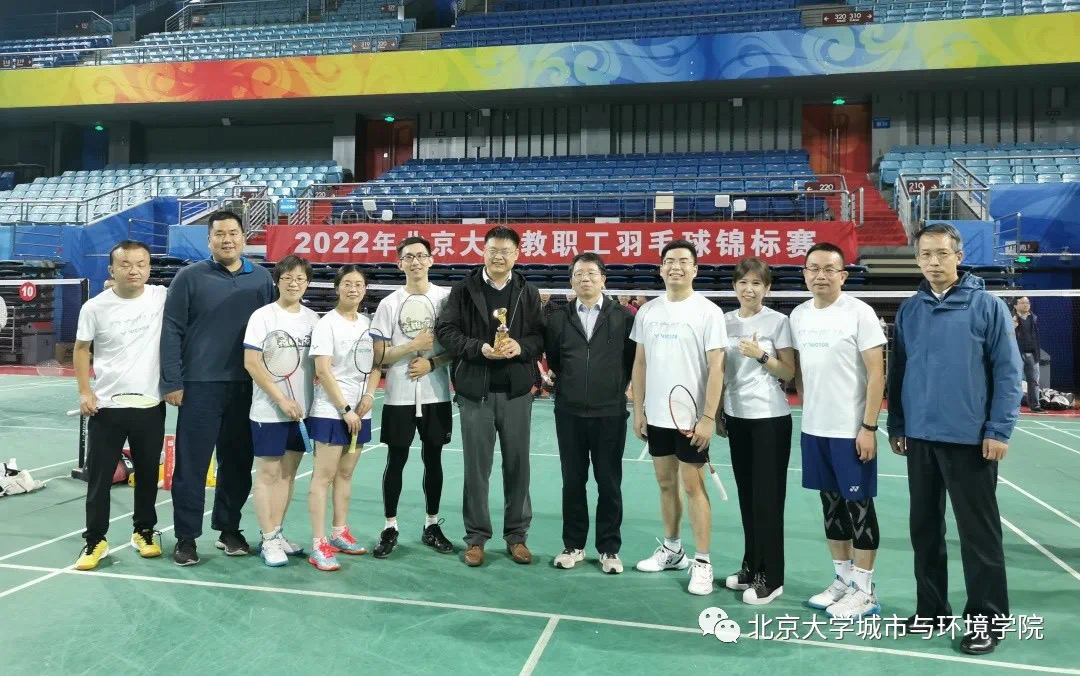 共派出三支代表队出征本次赛事,各组成员奋力拼搏、力争上游。其中,城环1队在全校55支队伍里一举夺得乙组冠军。 城环教职工羽毛球代表队与学校工会主席安钰峰合影 本次锦标赛由金瓶梅在线