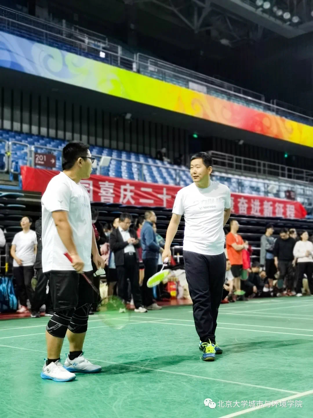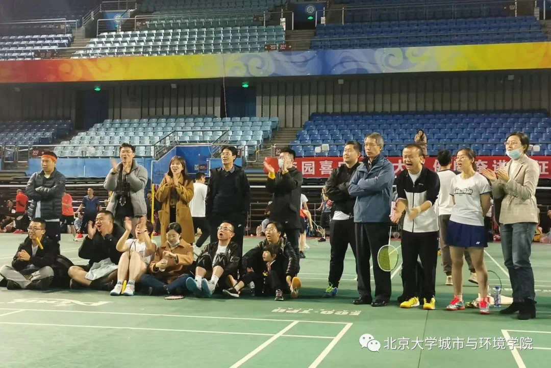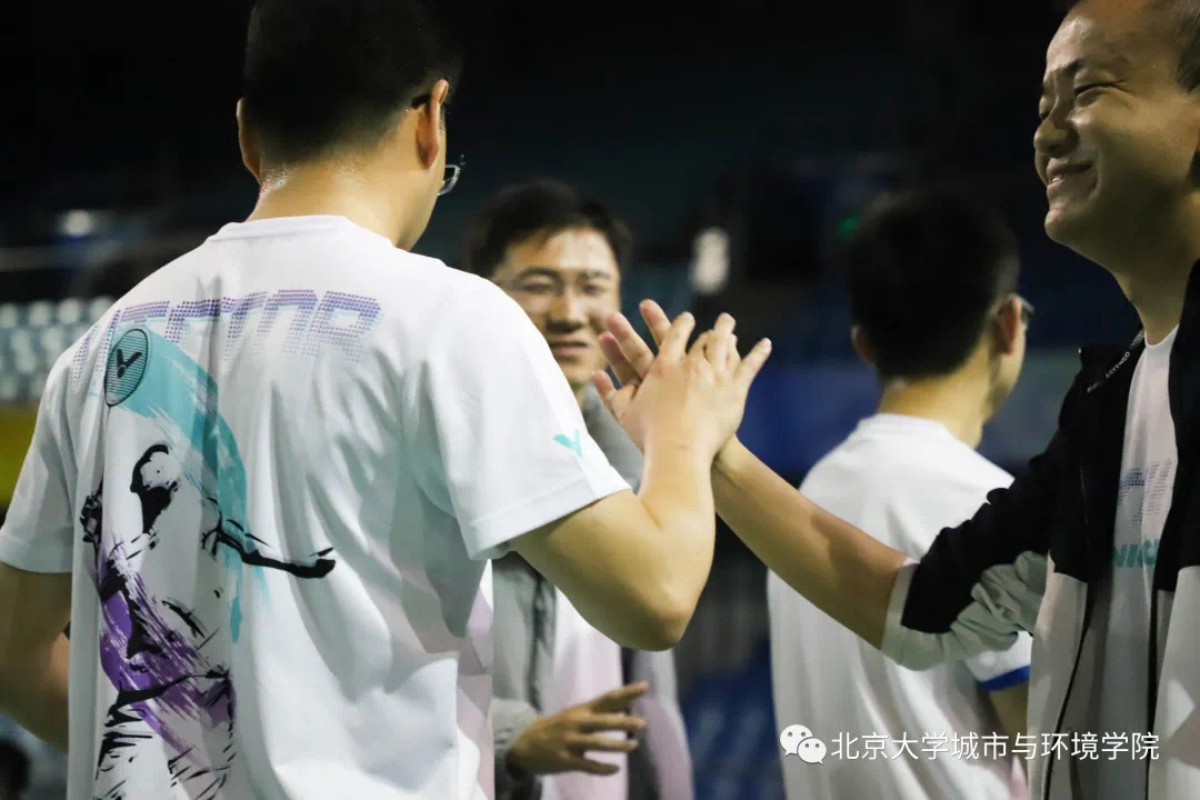 工会、体育教研部联合主办,共吸引全校甲组、乙组共71支队伍、500余名教职工报名参与。 经过学院工会精心组织、认真准备,党委书记彭建、工会主席陈耀华亲自带队,朴世龙院士等28名教职工积极参与,组成3支代表队与乙组中其他52支队伍展开激烈角逐。 比赛过程中,代表队成员团结一心、敢打敢拼,以稳定的发挥、精湛的技术、昂扬的斗志一路披荆斩棘,展现出了城环教工队伍超越自我、奋勇争先的精神风貌。院长贺灿飞等师生组成最强啦啦队全程助威。 学院领导全程助威 比赛过程中,经过激烈鏖战,城环1队以小组第一的优异成绩率先出线,并在此后的四轮比赛中接连取得2:0佳绩,最终以强劲的表现在决赛中战胜对手,成功捧起乙组冠军的奖杯,成功晋级甲组,创造了学院在相关赛事中的最好成绩。 城环1队队员合影 精彩瞬间 完全人格,首在体育。长期以来,学院积极组织师生参与各类体育锻炼与赛事活动,使大家在体育运动中释放激情、强健体魄、凝心聚力,营造了团结、友爱、向上的学院文化。