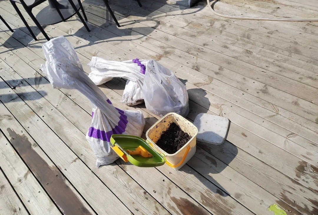 由于家园四楼露台长时间缺少打理,土壤肥力较低,不足以为植物生长提供充足养料,还存在板结等问题,所以在正式播种之前,参与项目的同学们需要挖走已经枯死的景观植物,并对土壤进行清理。