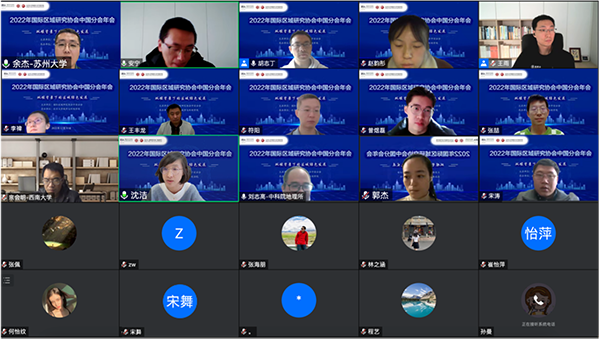 的张培风同学分析了城市土地资源配置方式对区域产业演化的影响并提出了对发展中国家突破产业路径的启示。王昱和吴旗韬二位教授围绕研究内容、方法创新、观察视角以及演讲方式等方面对每位老师或同学的发言做了精彩点评。 【分会场八:创新创业与区域发展】 分会场八的主题为“创新创业与区域发展”,共有25个报告,由华东师范大学的曾刚教授、浙江大学的王琛教授、南京师范大学的汪涛教授、地理科学与资源研究所的刘志高研究员共同主持。报告围绕都市圈和创业型城市的时空演化、城市创新网络、知识创新对传统产业集群的影响、高新技术园区企业等主题展开。与会者围绕重点行业、针对重点区域的创新格局展开了热烈讨论,如新能源汽车产业的创新格局、长三角城市群的创新服务网络等。会议气氛活跃,提问积极,讨论热烈。 【分会场九:数字经济与区域发展】 分会场九主题为“数字经济与区域发展”,由河南大学环境与规划学院苗长虹教授主持,分为上下两场,共计9个报告,并分别由周倩和李伟民老师进行点评。报告围绕数字经济发展与中国城市出口升级、产业结构转型、中国信息消费发展、县域创新发展等主题展开。汇报结束后,各参会报告者和参会人员也进行了讨论,针对数字经济对城际交通的影响机制、数字经济对相关产业的带动作用、数字经济对供给需求贸易等方面的影响进行交流,老师们也针对汇报技巧、如何充分挖掘数据和模型背后的含义、如何检验实证研究的可靠性和稳健性等问题进行了交流。 【分会场十:数字化时代的区域高质量发展】 分会场十的主题为“数字化时代的区域高质量发展”,分为上下两场,共计15个报告,由上海国家会计学院钟世虎老师主持。报告围绕数字金融、数字经济、生物医药网络、劳动力市场、城市交通节点、国土空间规划等话题展开,与会报告人依次交叉点评。会议选题极具前沿性和人本主义精神,研究方法具有多元性特征,来自多研究领域的报告人们碰撞出了学术火花。会议上半场中,胡明志介绍了制度脆弱性、非正式制度与创业活动的研究,王小环分享了消费对财富冲击反应的研究结果,张方以高铁为例分析了中小城市交通节点与城市空间结构,潘浩之讨论了高精度碳排放数据对面向碳达峰、碳中和的国土空间规划的支撑作用,漆智鹏讨论了知识产权和人力资本之间的关系,钟世虎以“何以为家”切题,探讨了儿童大病医疗与消失的孤儿的关联作用。下半场中,钱文豪讨论了环境法规与公共卫生的相关议题,段义学汇报了关于数字金融、绿色创新与出口产品质量的研究,赵世宽基于政府支持的视角介绍了环境诱导研发对碳生产率影响的研究结果,王嵩分析了数字经济对城市创新的影响,苏心怡讨论了城市新创企业区位及其轨道交通影响,崔雨欣、林美鸿分别汇报了数字化背景下企业家灵性资本和全球医药创新网络的研究,伍娟汇报了区域合作协议的理论基础、治理逻辑、应用过程及运行特性等内容,李一杰使用腾讯人口迁徙大数据检验了劳动市场中的省级边界效应。 【分会场十一:国际贸易与区域发展】 分会场十一以“国际贸易与区域发展”为主题,由中国科学院地理科学与资源研究所宋周莺研究员主持,围绕贸易保护与环境规制、全球贸易格局、全球生产网络、出口市场多样性与区域出口增长、“一带一路”倡议与区域经济发展等主题进行了8个研究报告。报告结束后,主持人、各位报告人以及线上观众结合报告内容积极提问,开展了热烈讨论。宋周莺老师与各位报告人进一步围绕贸易出口市场多样性与区域发展等展开观点交锋,现场师生围绕国际贸易研究的发展前景进行了深入的交流讨论。 【分会场十二:区域均衡发展与社会公平】 分会场十二以“区域均衡发发展与社会公平”为主题,由上海交通大学国际与公共事务学院卢婷婷副教授、湖南大学公管学院谷浩老师主持。华南理工大学刘于琪老师首先介绍了中国城乡社区人居环境对老年人心理健康的影响相关研究;中山大学潘卓林博士讨论了深圳市新移民社会空间分异问题;侯奕廷、常铖等同学分别以澳门、北京五道口为研究案例探讨了社会空间隔离、外国学生社区治理等问题。接着,尧文洁、费子娟、李美娜、周小孟等同学重点关注了中国西部地区水碳供需关系、资源比较优势、生态转移支付与经济-环境-旅游耦合等关键问题,对区域均衡发展各抒己见。分论坛下半场,卢婷婷副教授介绍了有关上海住房产权分异与城市基础设施分化空间关系的研究成果;穆学英、陶卓琳、盛涵天等老师同学分别就住房产权获得、城市公共设施优化模型、区域经济韧性等话题关注到城市、区域治理问题。之后,张渼铉、杜彤云、常江与林育豪等老师同学探讨了城市街道空间治理、城市更新、社区贫困、流动人口再生育意愿等前沿研究问题。 【分会场十三:时空大数据建模与区域研究】 分会场十三的主题为“时空大数据建模与区域研究”,上下半场分别由河南大学董冠鹏教授、武汉大学卢宾宾副教授主持,共有9位老师学者进行报告。会议报告展示了多样性的学术成果,一方面,学者们围绕地理大数据在区域研究领域的应用,从方法论的视角出发,探讨了诸多新方向、新框架、新模型和新算法,例如地理加权空间交互模型、地理