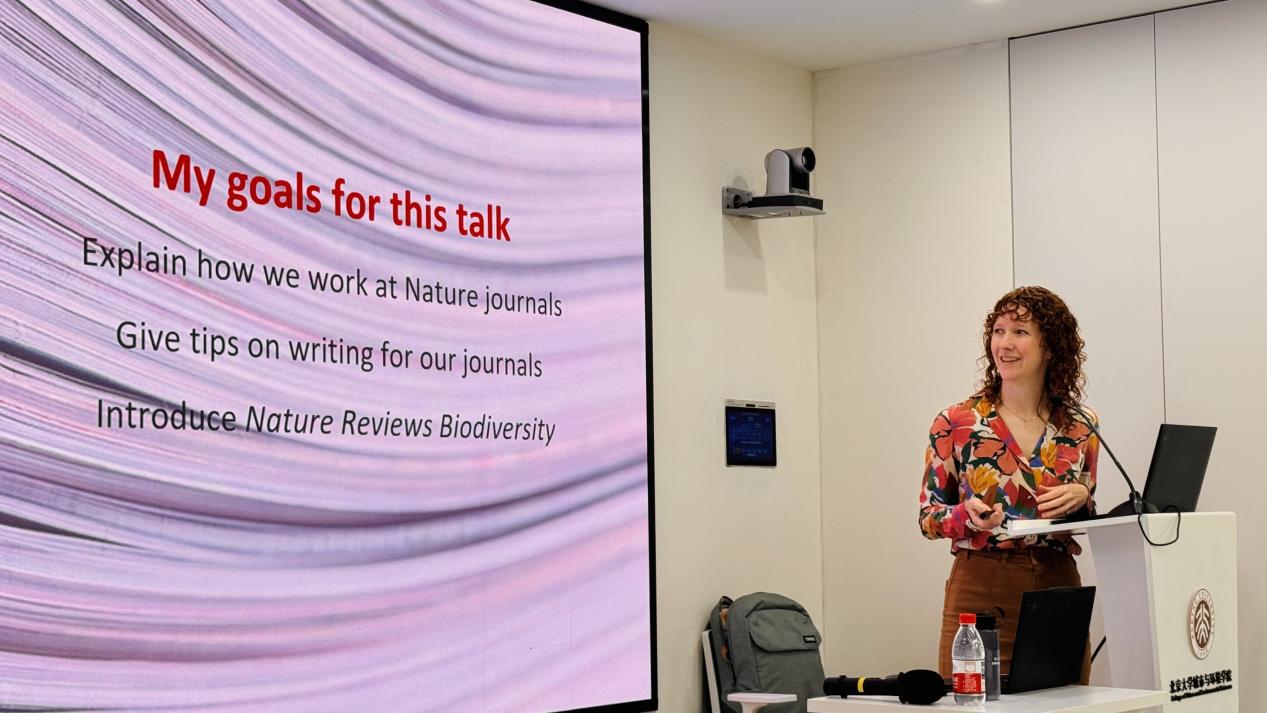 首先,Alex McKay博士围绕“Nature期刊的编辑工作机制”、“面向相关期刊的学术写作建议”以及“《Nature Reviews Biodiversity》的办刊定位”三个方面展开介绍。她结合Nature Portfolio旗下不同期刊的定位与特点,系统梳理了论文投稿与编辑过程中的关键环节,并就期刊选择、稿件评审流程以及综述论文写作等问题分享了经验与建议。随后,她重点介绍了《Nature Reviews Biodiversity》的办刊理念、选题特点及相关要求,以便与会师生进一步了解高水平综述期刊的编辑标准与写作方向。